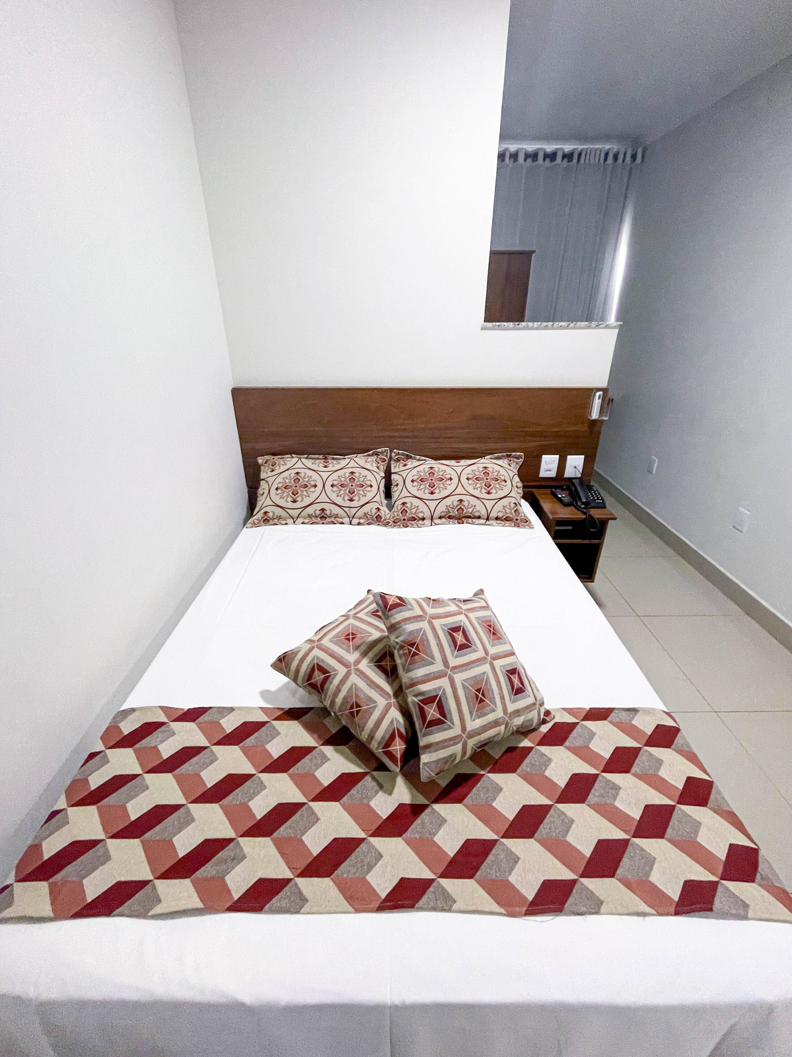Nossos quartos no Hotel Minas são pensados para proporcionar o máximo de conforto e praticidade. Com capacidade para até 4 pessoas, todos os quartos são equipados com ar-condicionado, telefone, TV e frigobar. Seja uma viagem em família, a trabalho ou a lazer, temos o espaço ideal para você relaxar e recarregar as energias. Além disso, aceitamos pets, para que toda a família possa desfrutar de uma estadia agradável e confortável.