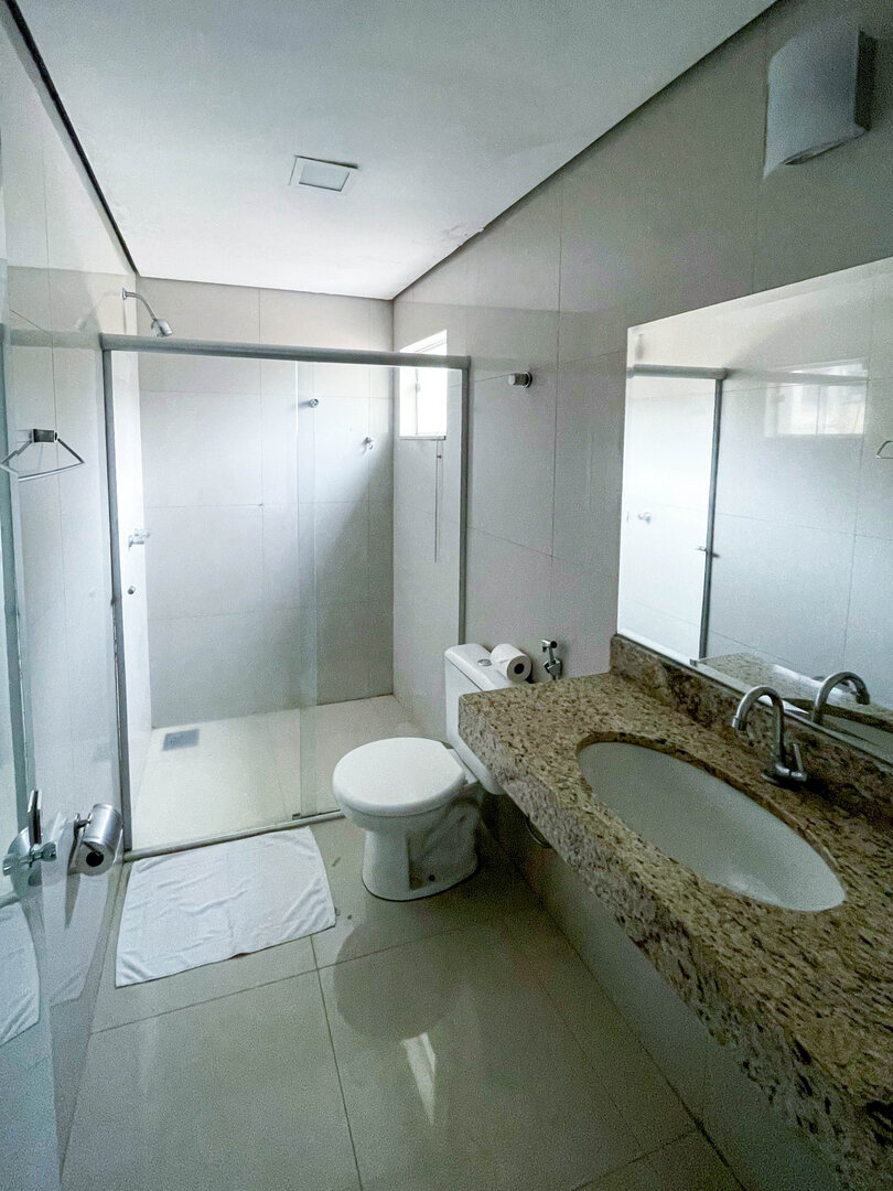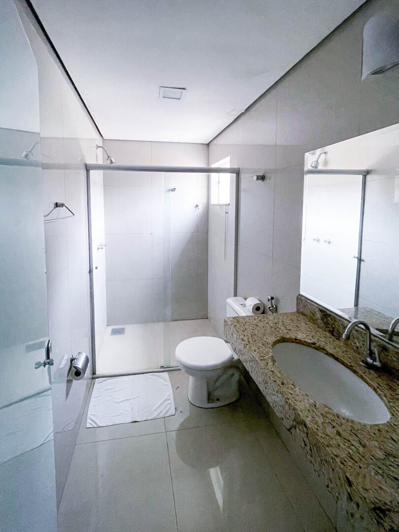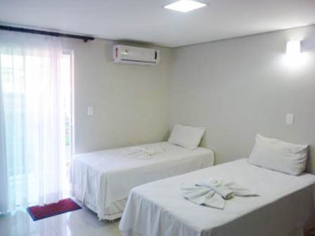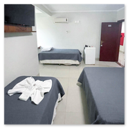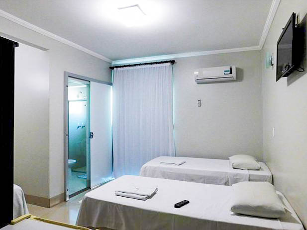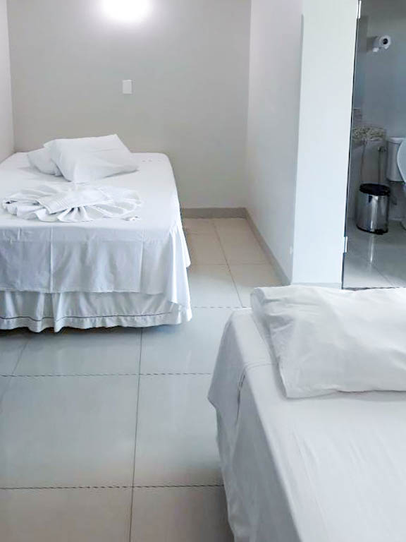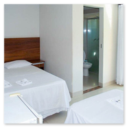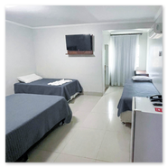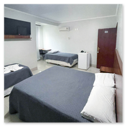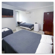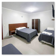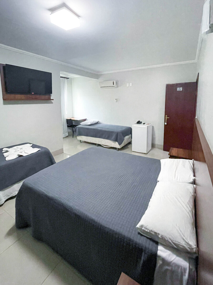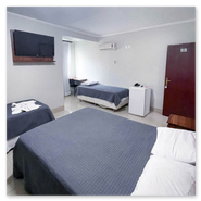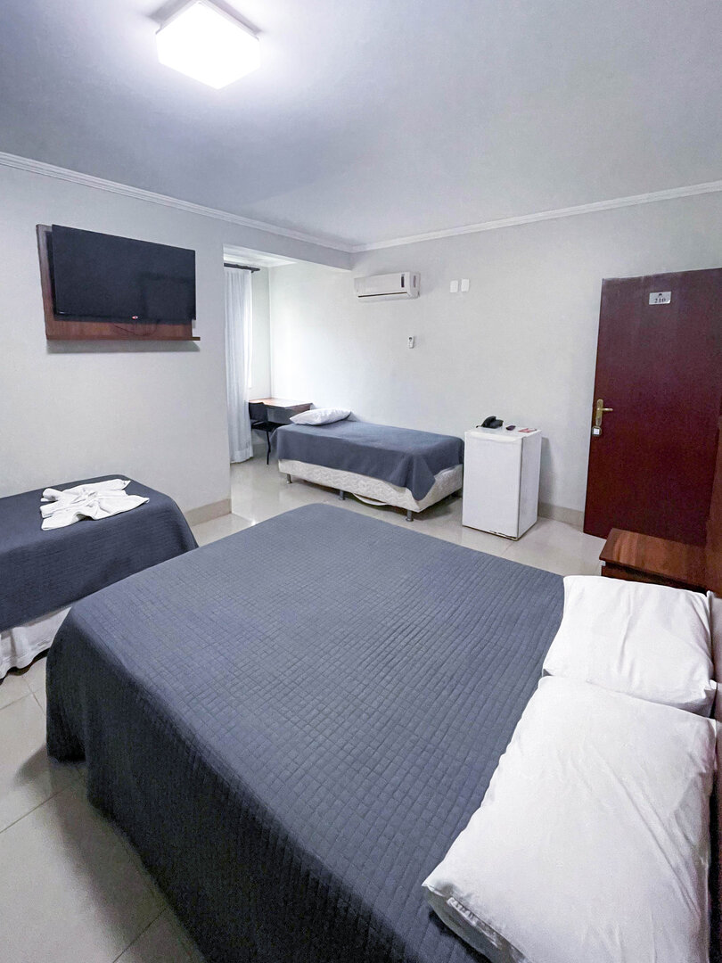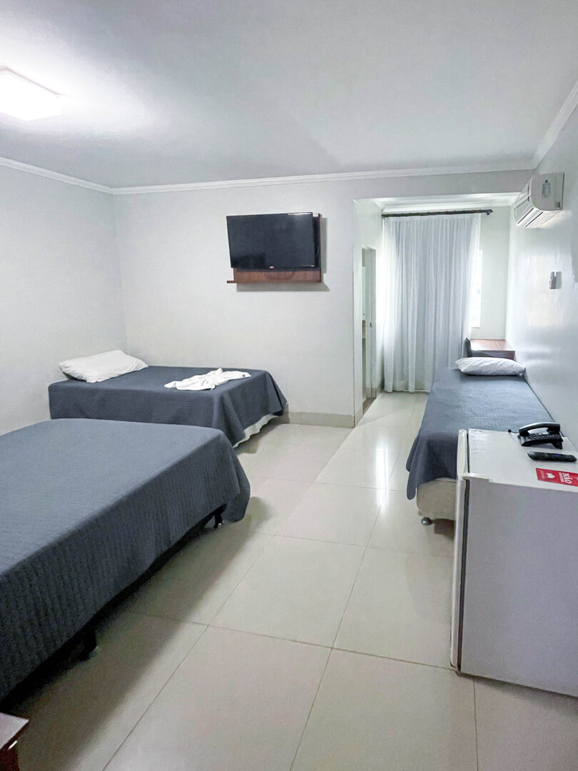 Espaçoso e acolhedor, o Standard Quádruplo acomoda até quatro pessoas com uma cama de casal e duas camas de solteiro. Conta com televisão, ar-condicionado, telefone, mesa de trabalho e Wi-Fi gratuito. Comodidades como sabonete, shampoo e toalhas também estão disponíveis.